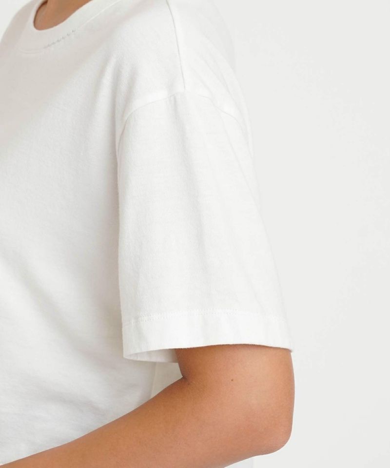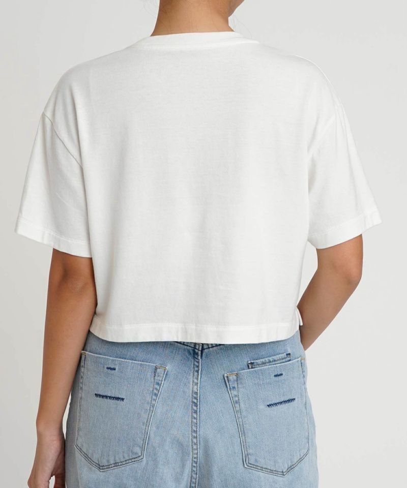 真っ白に仕上げすぎず、ほどよく肌になじむオフホワイト。ジーンズとのコーディネートにも合わせやすい色味です。