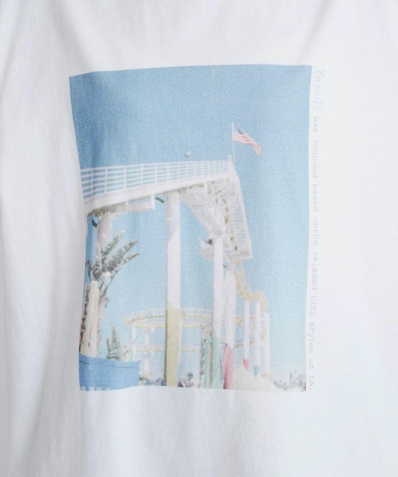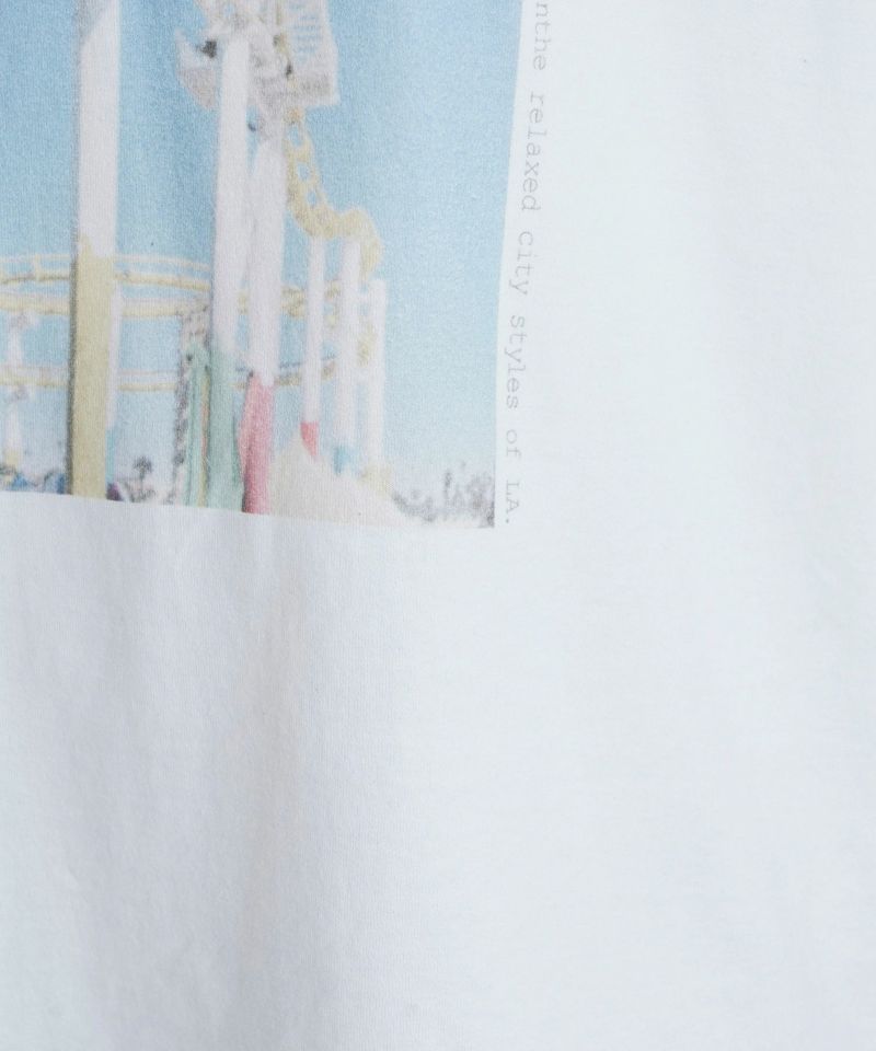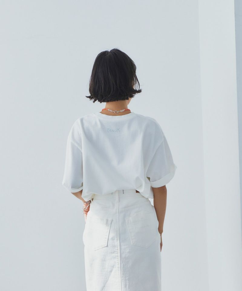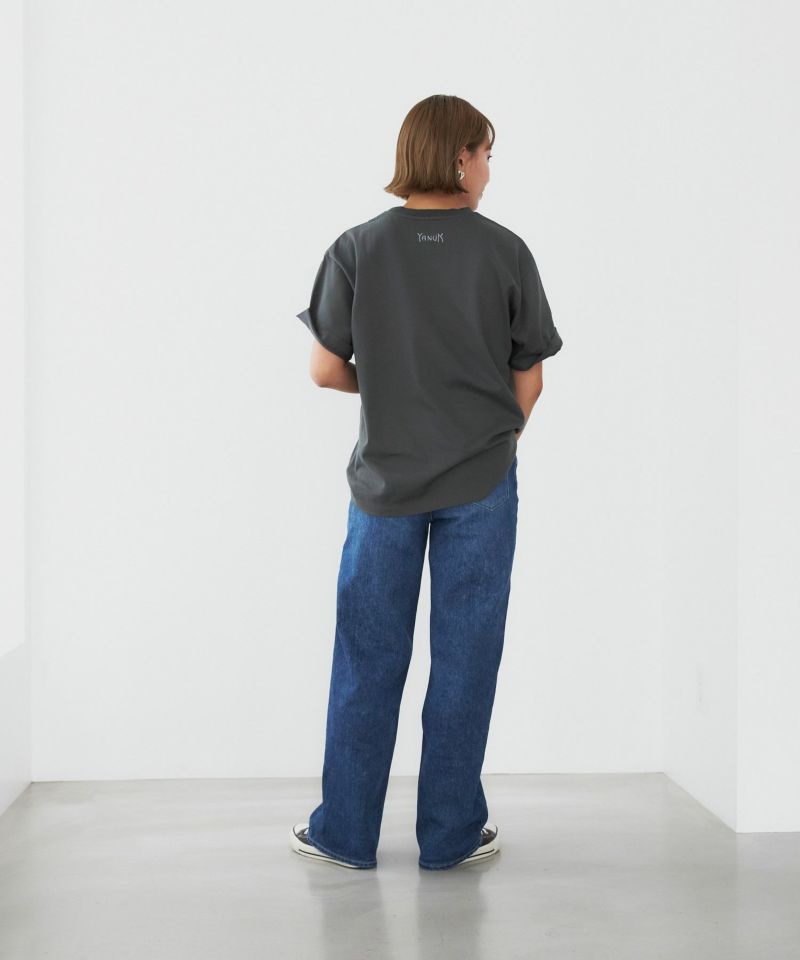 L.A.発祥のデニムブランド“YANUK”。そのL.A.で撮影された遊園地がモチーフです。L.A.のムードがブランドのアイデンティティとして表現されています。シルエットは、オーバーサイズのボックスシルエット、古着のようなラフなシルエットにこだわりました。丈が長めでお尻まで隠れるので、体型カバーができます。袖も二の腕がカバーでき、折って好みの袖丈に調整ができます。ラフなムードが様になるプリントTです。