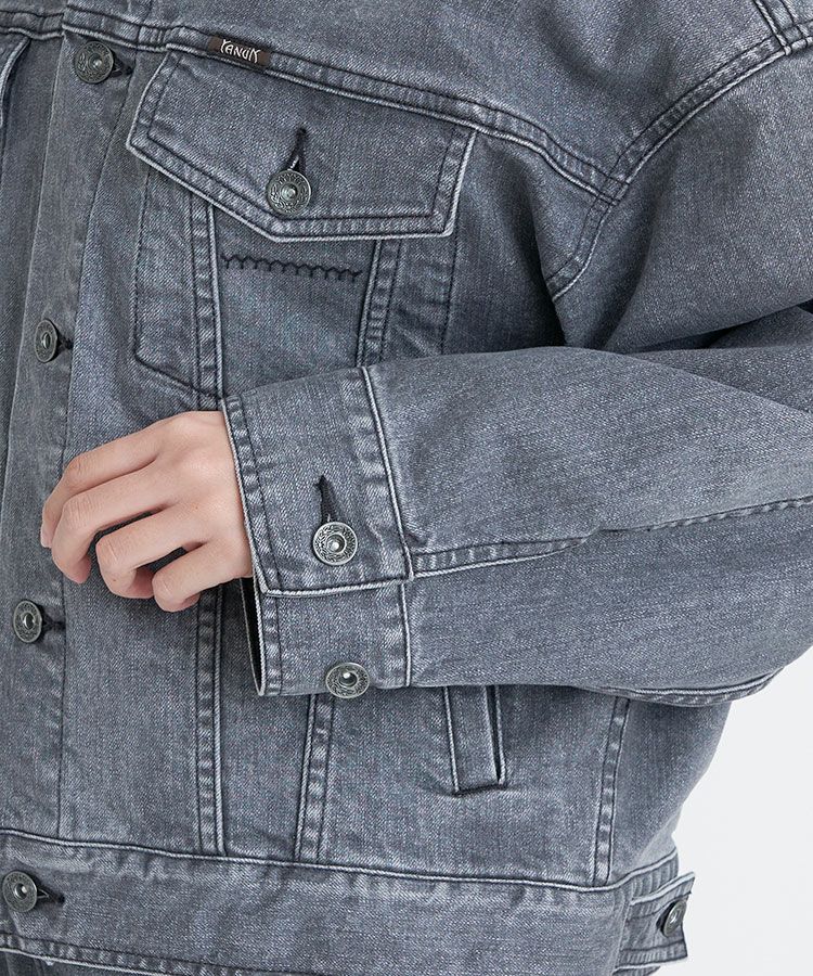 自然な色落ちを表現した着まわししやすい軽めのグレーカラーです。通年着やすい色味となっています。