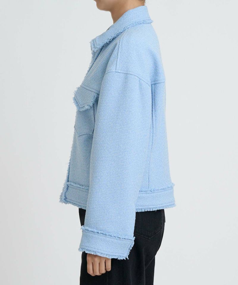 定番のジーンジャケットを上品なツイード素材でアップデートしました。カジュアルなデザインながら、織りの表情とほどよい厚みのあるツイードが、クラシックな雰囲気をプラスしてくれます。きちんと感がありつつも、肩の力を抜いたこなれ感のあるシルエットです。デニムと合わせてラフに、スカートと合わせてフェミニンにと、幅広いスタイルにマッチします。羽織るだけでシーズンムード高まる、ワンランク上のライトアウターです。