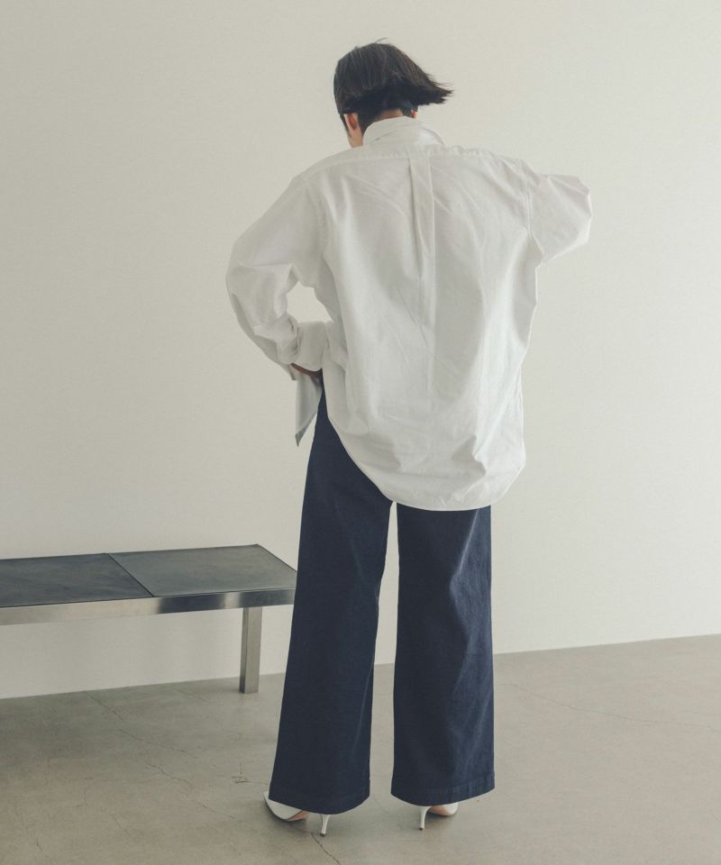 リジットデニムのような深いインディゴカラー。濃色は、カジュアル過ぎずクリーンな雰囲気が魅力的。定番として合わせやすく、キレイめなコーディネートにもマッチする品のある色です。また、色落ちしづらい染色方法で染められており、本来のインディゴデニムよりも、色移りを気にせず着用いただけます。