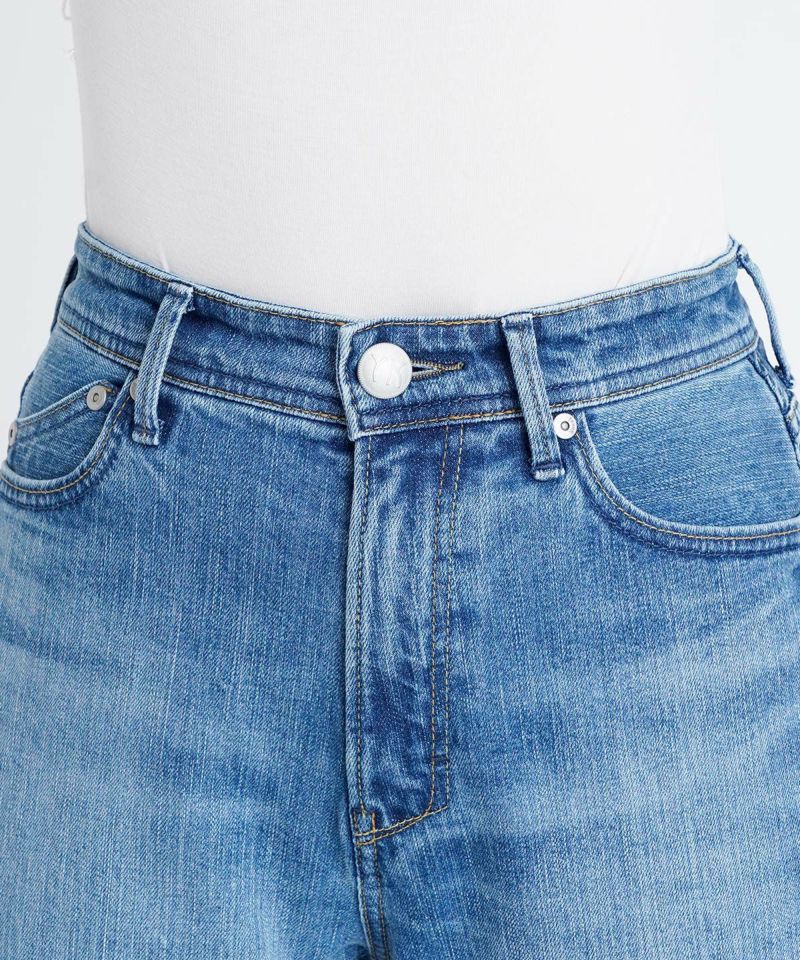 YANUKでも人気の通年通して履きやすい中淡色カラーです。スカッとして女性らしい色味ですが、古着のようなマイルドな表情の加工感をつくっています。女性らしいスタイルにも合いやすく、きれいなデニムの印象でありながら、奥行きのある表情となっています。きれいに履き馴染んだような、清潔感のある雰囲気の加工感に仕上がっています。