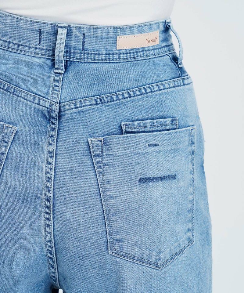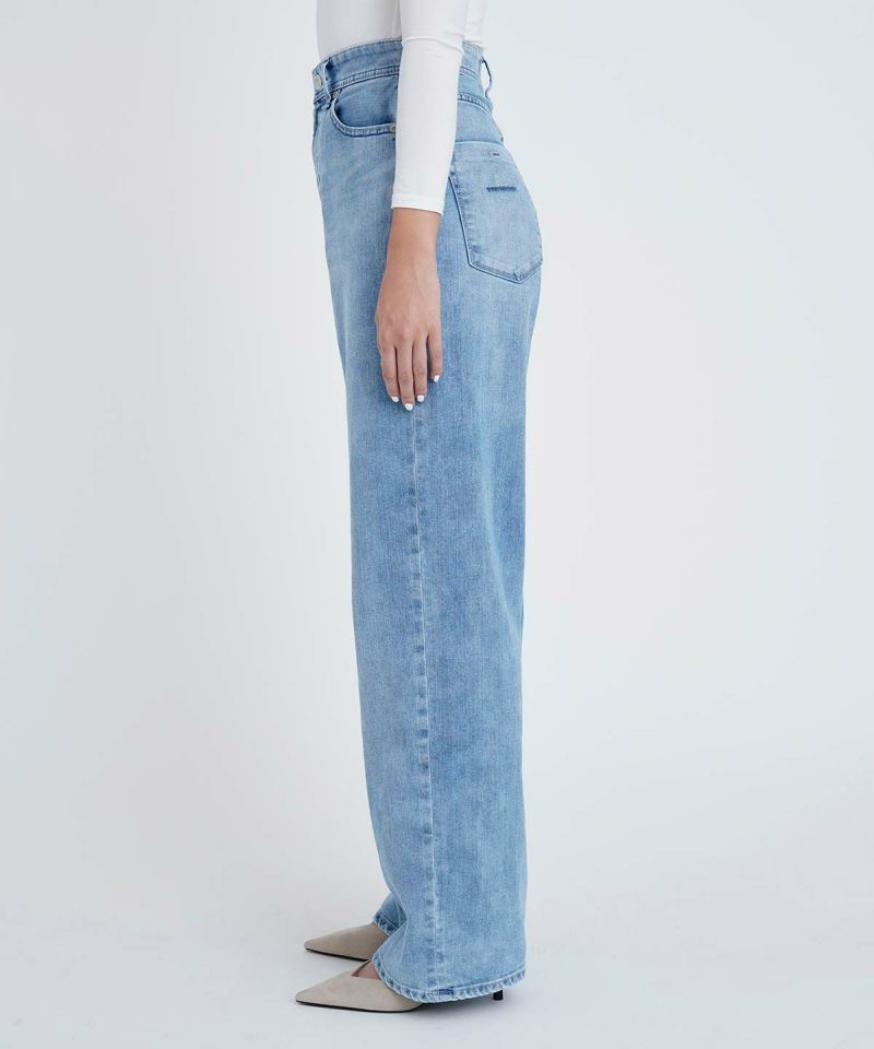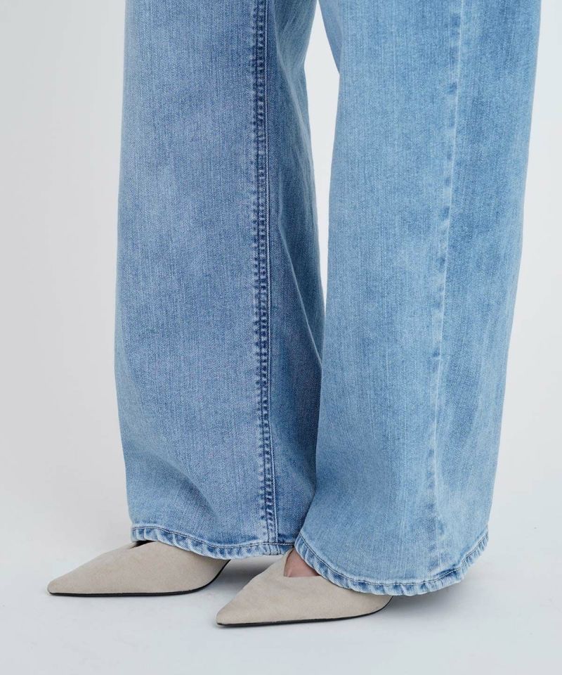 LEAの大人気色がJOANにも登場です。爽やかライトブルーで、全体的に白っぽいパウダー状のあたりがついた柔らかい印象です。淡色ですがヒゲがあり、モモのハイライトもしっかり入っているので、脚がスッキリして見えます。ナノミスト加工という、従来のデニム加工よりも水の使用料を削減でき、環境にも優しい加工を施しています。ナノミスト加工ならではの白とブルーが曖昧な雰囲気が特徴の1本です。白や明るい色との合わせによく馴染み、爽やかスタイルがこの1本で完成します。