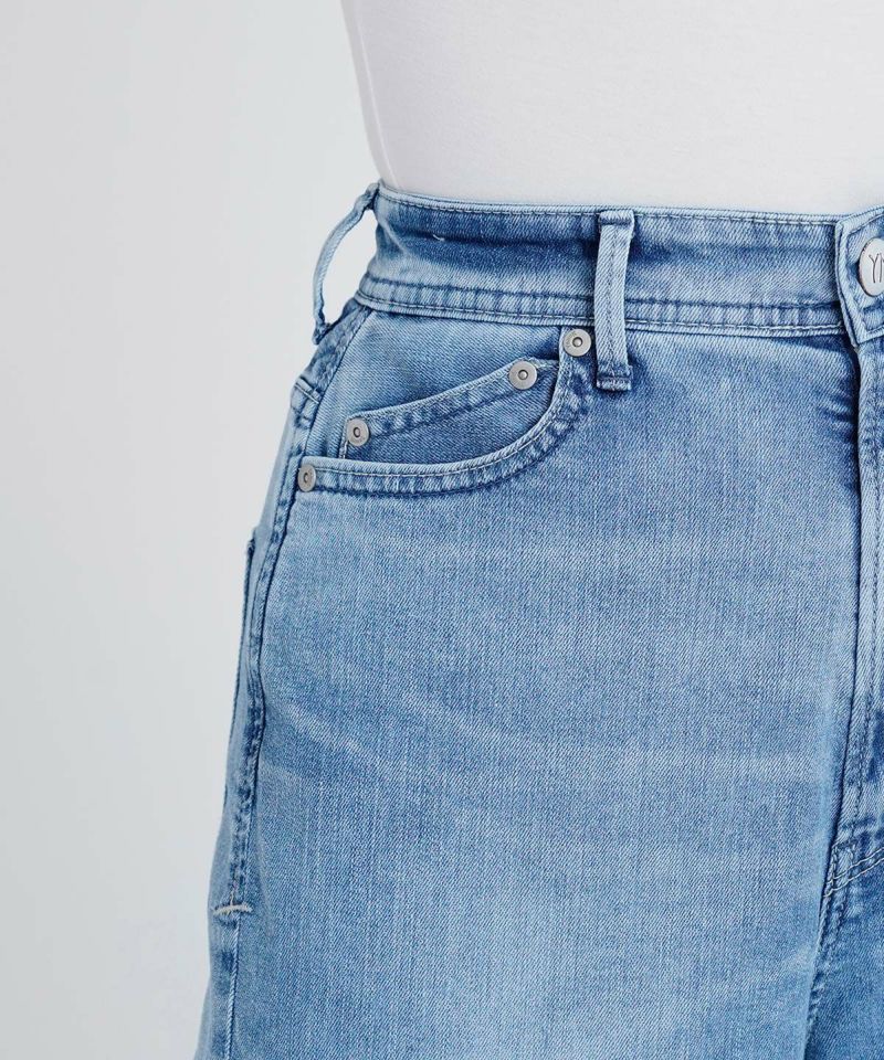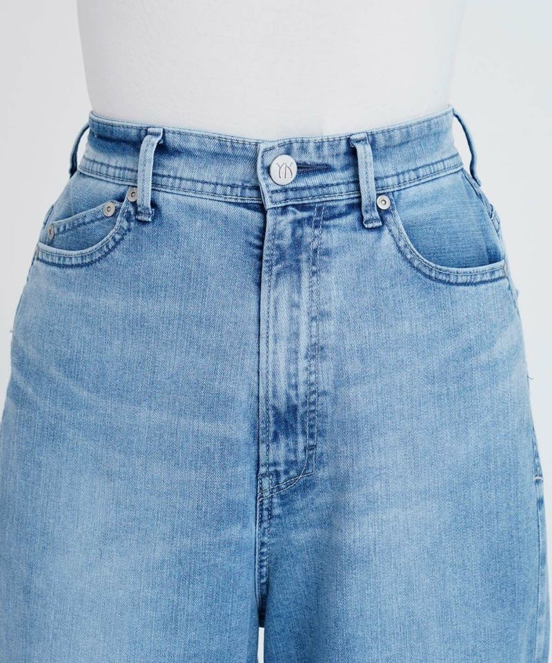 ストローのように真ん中が空洞になっているポリエステル繊維を使用した中空糸をヨコ糸を使用している為、同じ厚さの綿100%デニムと比べて20%軽くなっています。数ある中空糸の中でも、YANUKでは性能の良いO型中空糸を使用しているので、より軽く穿き心地が抜群です。また、速乾性に優れているので洗濯後の乾きも早くお手入れがしやすいです。