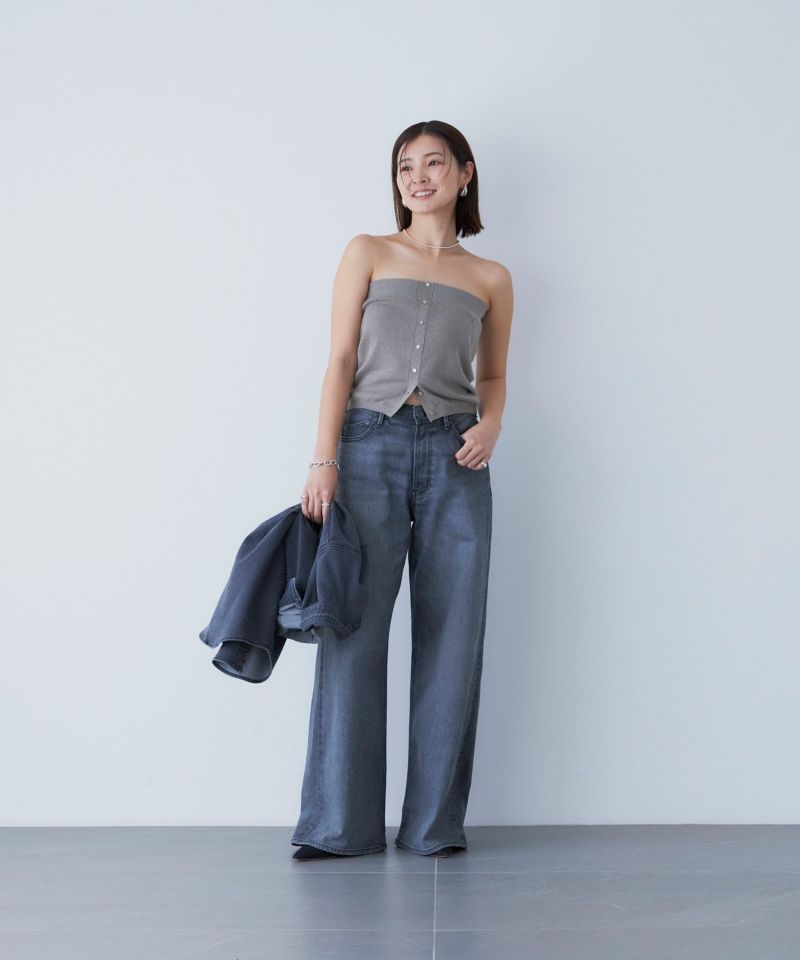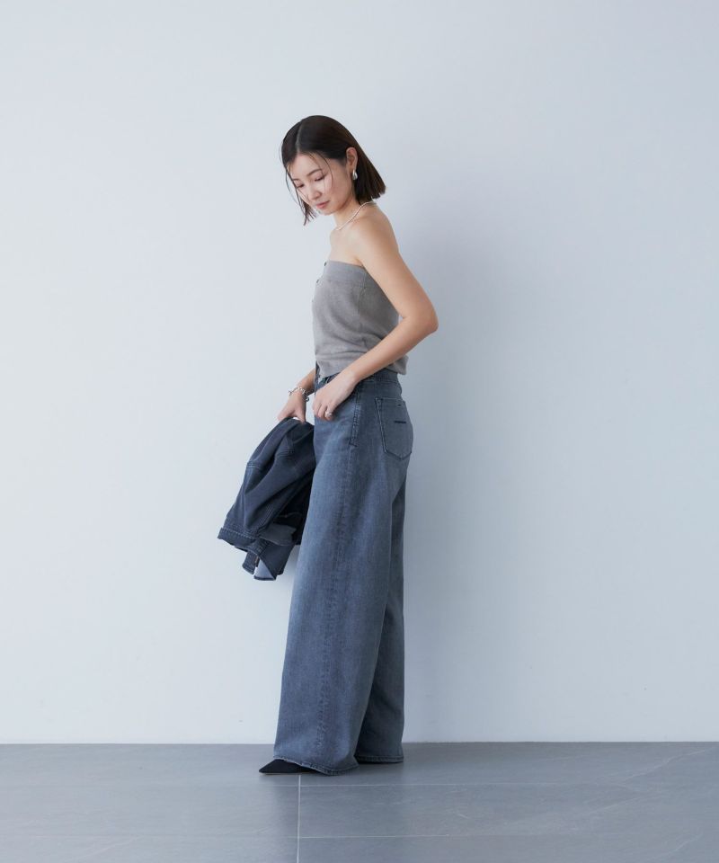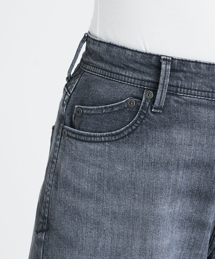 古着風にマイルドな色落ちを表現したフェードグレー。一見では薄く見えますが、ベース色を少し濃い目に残しているので、コントラストが効き、膨張しづらいグレーに仕上げています。通年使いやすく、様々なコーディネートに馴染みやすい1本です。