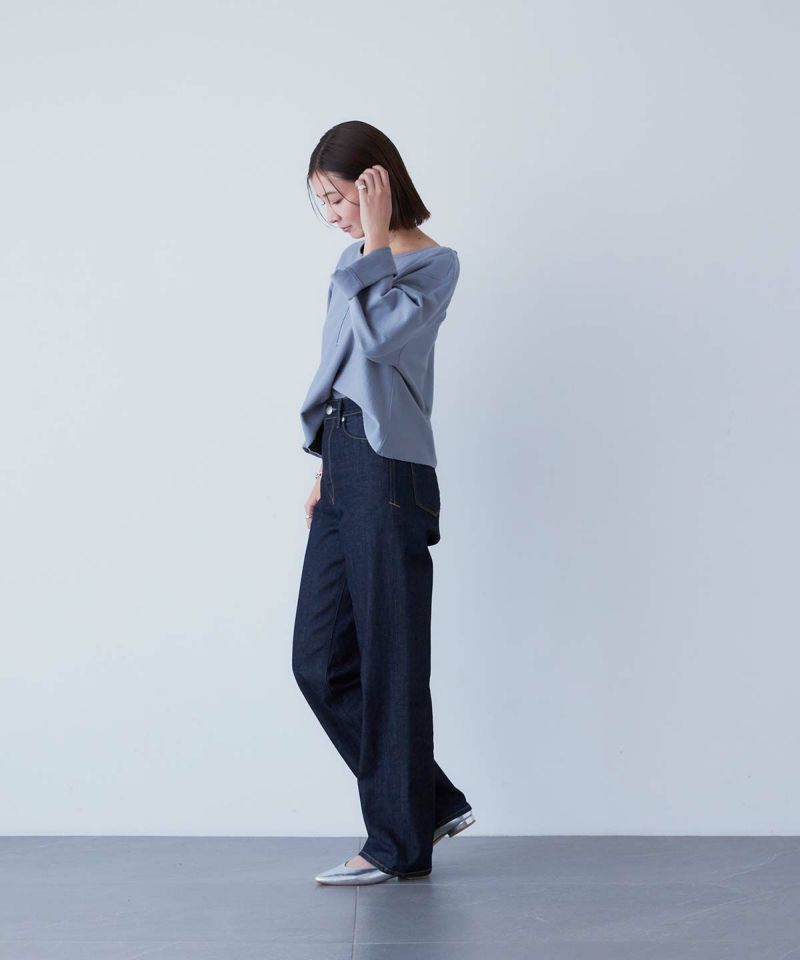 深さがある股上にゆるっとしたストレートが特徴のLEA。ゆとりのあるストレートは野暮ったくなりがちですが、LEAはパターンにこだわることで美脚に、そして脚長に見せてくれるYANUKらしいゆるストレートデニムです。