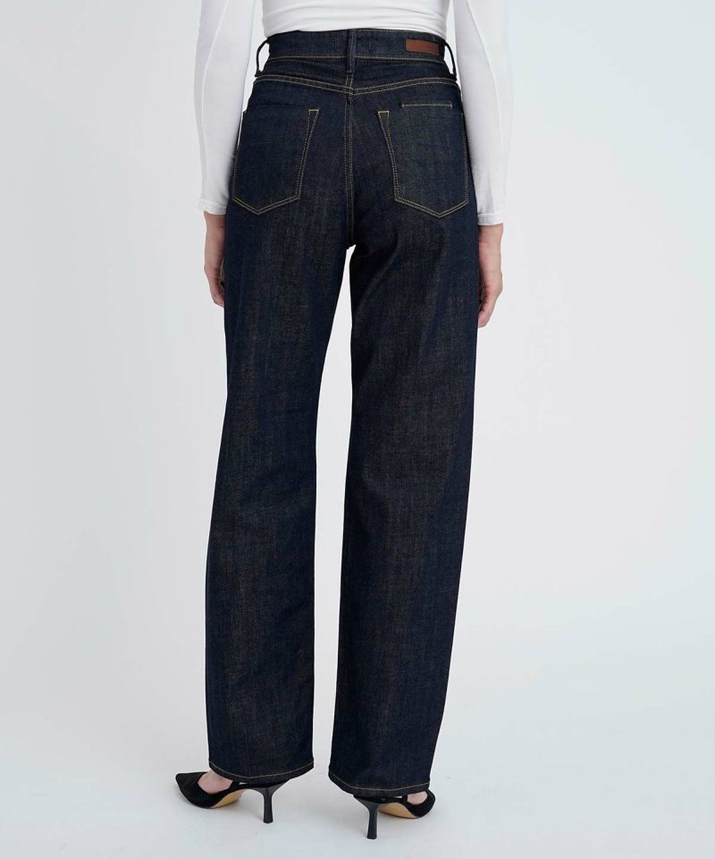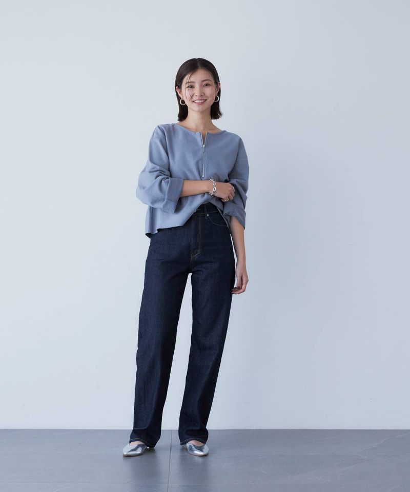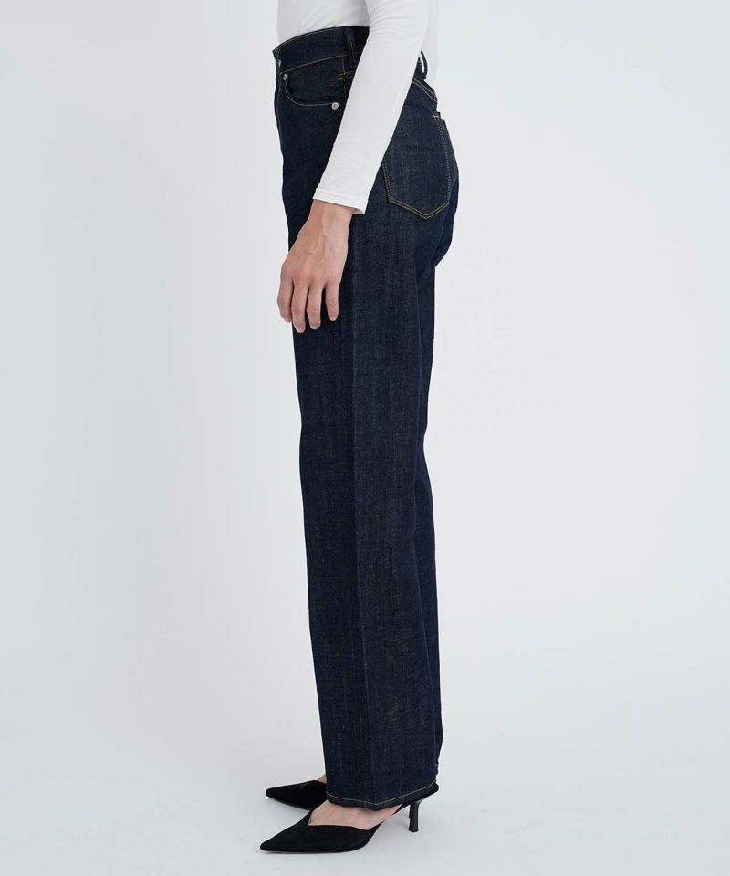 深さがある股上にゆるっとしたストレートが特徴のLEA。ゆとりのあるストレートは野暮ったくなりがちですが、LEAはパターンにこだわることで美脚に、そして脚長に見せてくれるYANUKらしいゆるストレートデニムです。