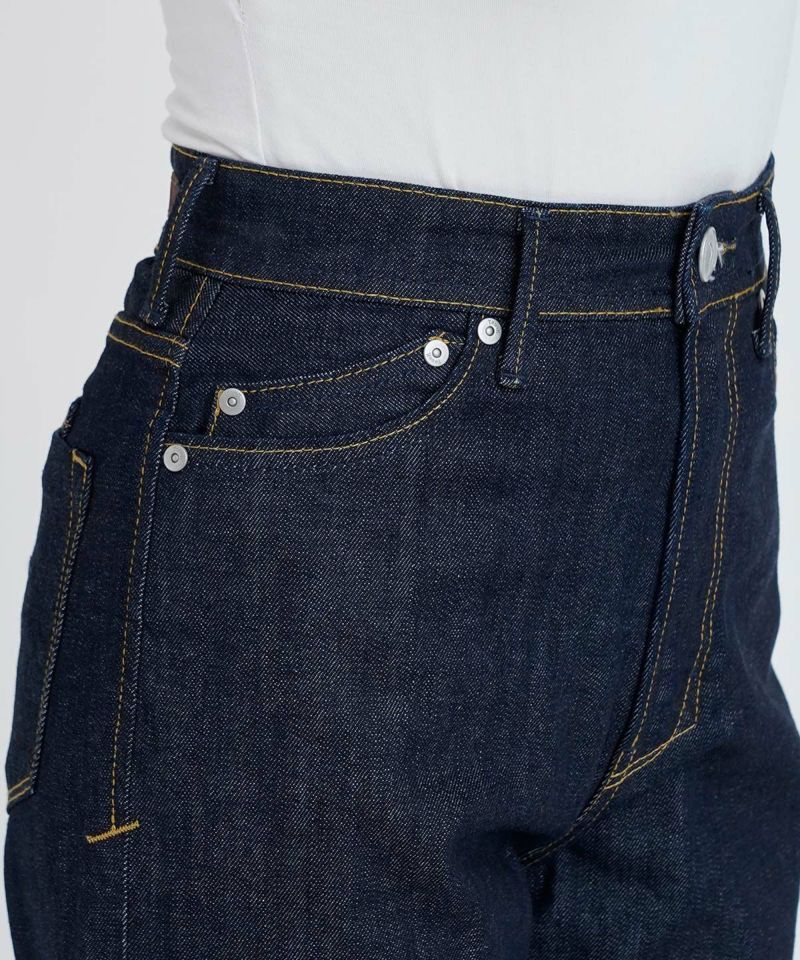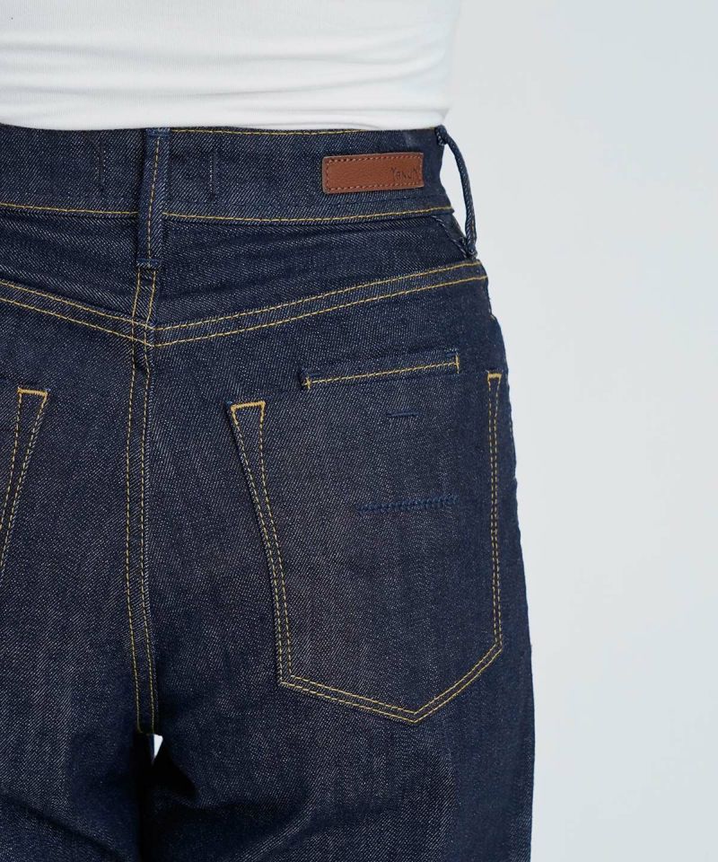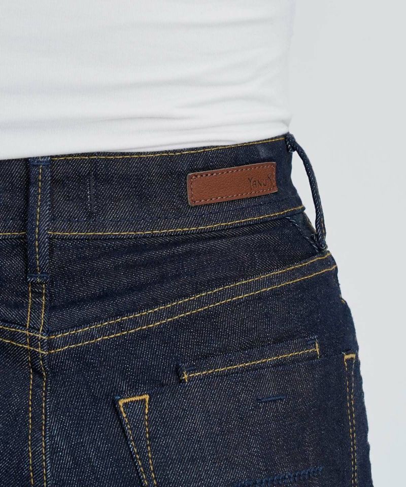 YANUK定番のストレッチデニムで、肉感を拾いにくい適度なハリ感がありながらも柔らかい穿き心地で、美しいレッグラインを実現しています。硬いイメージがあるワンウォッシュカラーでも快適に穿いていただけます。きれいにまとまるワンウォッシュの色味としっかりと深さのある股上で、カジュアルなトップスはもちろんテーラードジャケットなどのキレイめアイテムとも相性がよく、季節や気分によって合わせるアイテムを変えられる着回し力抜群な1枚です。ウエストベルトの裏地を色移りしにくいデニム生地を使用しているので、トップスインでも穿いていただけます。