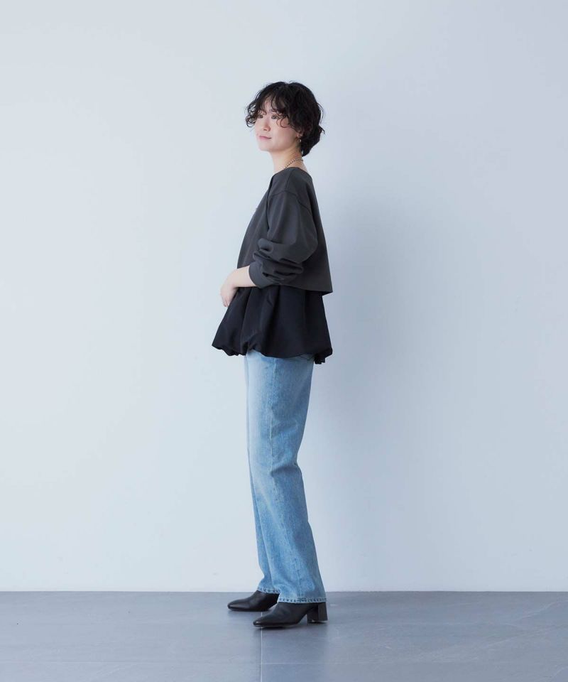深さがある股上にゆるっとしたストレートが特徴のLEA。ゆとりのあるストレートは野暮ったくなりがちですが、LEAはパターンにこだわることで美脚に、そして脚長に見せてくれるYANUKらしいゆるストレートデニムです。