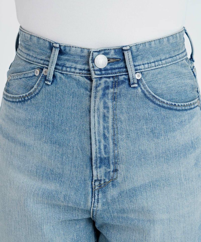 濃淡のコントラストが強い加工ではなく、洗いをかけてあえてぼんやりとした古着顔に仕上げることで、長年穿きこんだような愛着が湧いてくる表情となっております。ヒゲや太ももの擦り加工が強すぎずしっかりと深さのある股上で、カジュアルなトップスはもちろんテーラードジャケットなどのキレイめアイテムとも相性がよく、ニットやTシャツなどのトップスをインしてもサマになるので、季節や気分によって合わせるアイテムを変えられる着回し力抜群な1枚です。