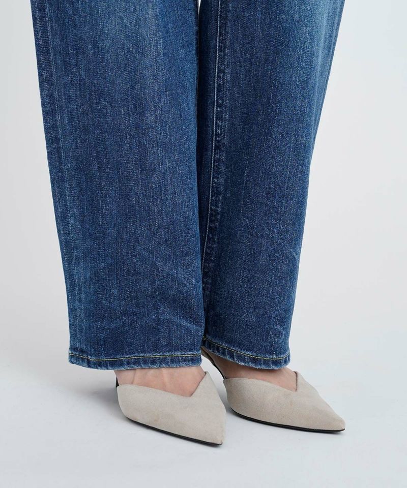 深さがある股上にゆるっとしたストレートが特徴のLEA。ゆとりのあるストレートは野暮ったくなりがちですが、LEAはパターンにこだわることで美脚に、そして脚長に見せてくれるYANUKらしいゆるストレートデニムです。