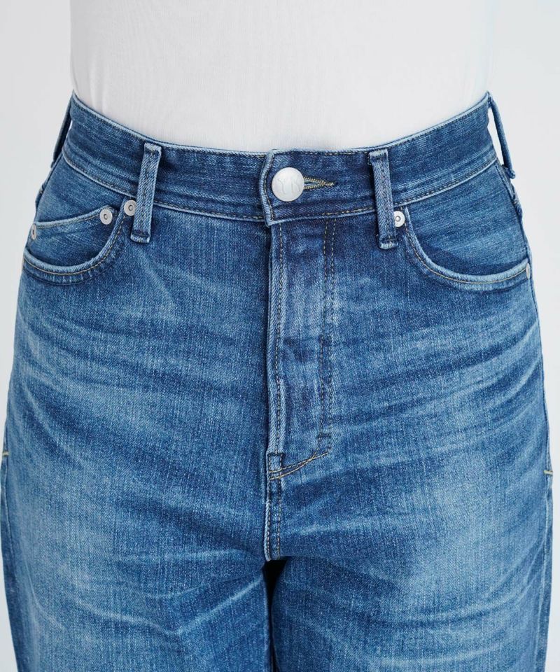 深さがある股上にゆるっとしたストレートが特徴のLEA。ゆとりのあるストレートは野暮ったくなりがちですが、LEAはパターンにこだわることで美脚に、そして脚長に見せてくれるYANUKらしいゆるストレートデニムです。