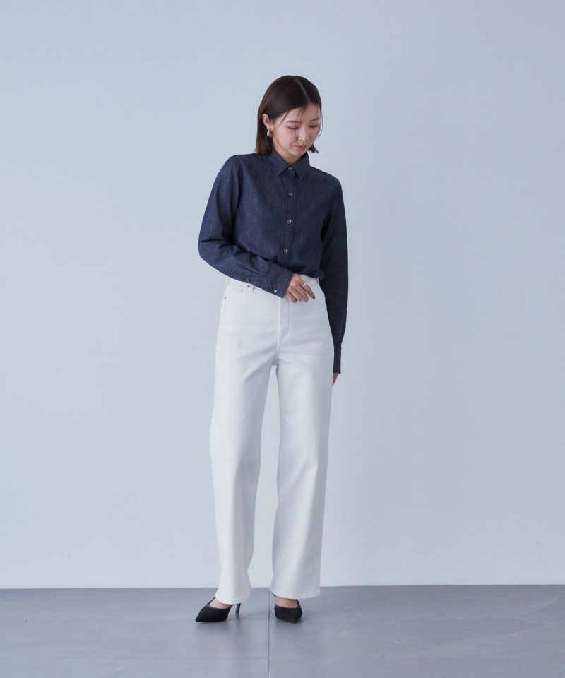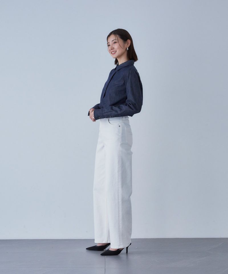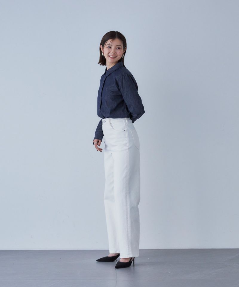 ストレッチの効いた穿き心地抜群のホワイトデニムです。少し生成がかったナチュラルなホワイトで、コーディネートにもなじみやすい1本です。