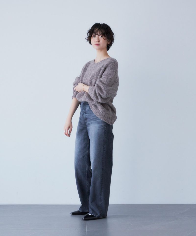 霞がかったようなマイルドな印象のグレーデニム。濃すぎず薄すぎない絶妙なフェードグレーで、通年穿きやすい1本です。スリ加工にエッジを効かせすぎないことで、USED感がありながらも上品さも兼ね備えた表情に仕上がっています。モモスリの脇にしっかりと濃く残った部分を作ることで、モモが張って見えず、脚が細く見えるようにこだわっています。いい意味で主張しすぎない為、様々なコーディネートに取り入れやすいです。