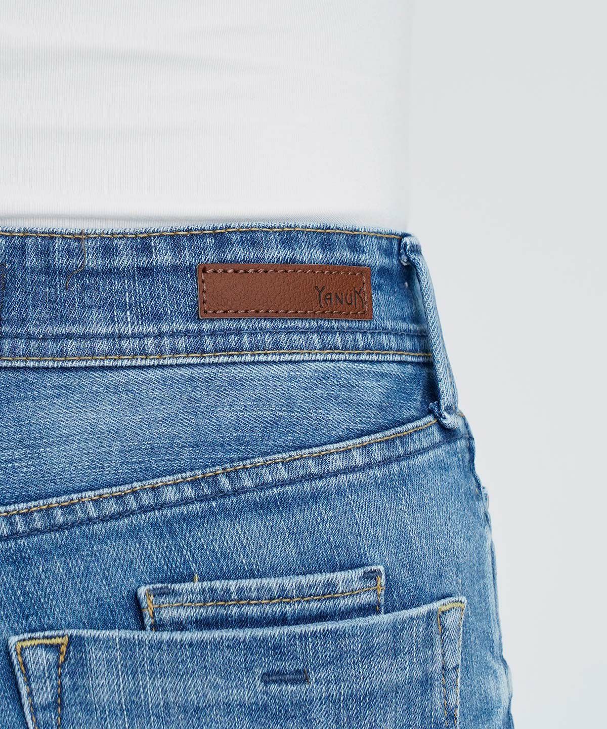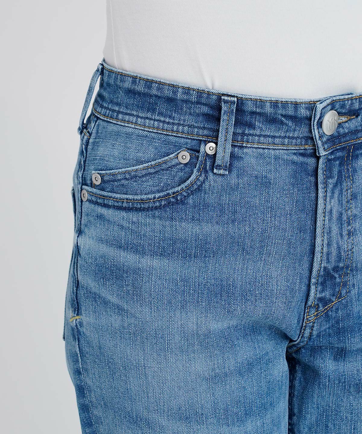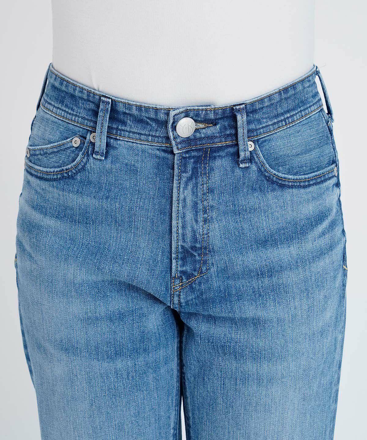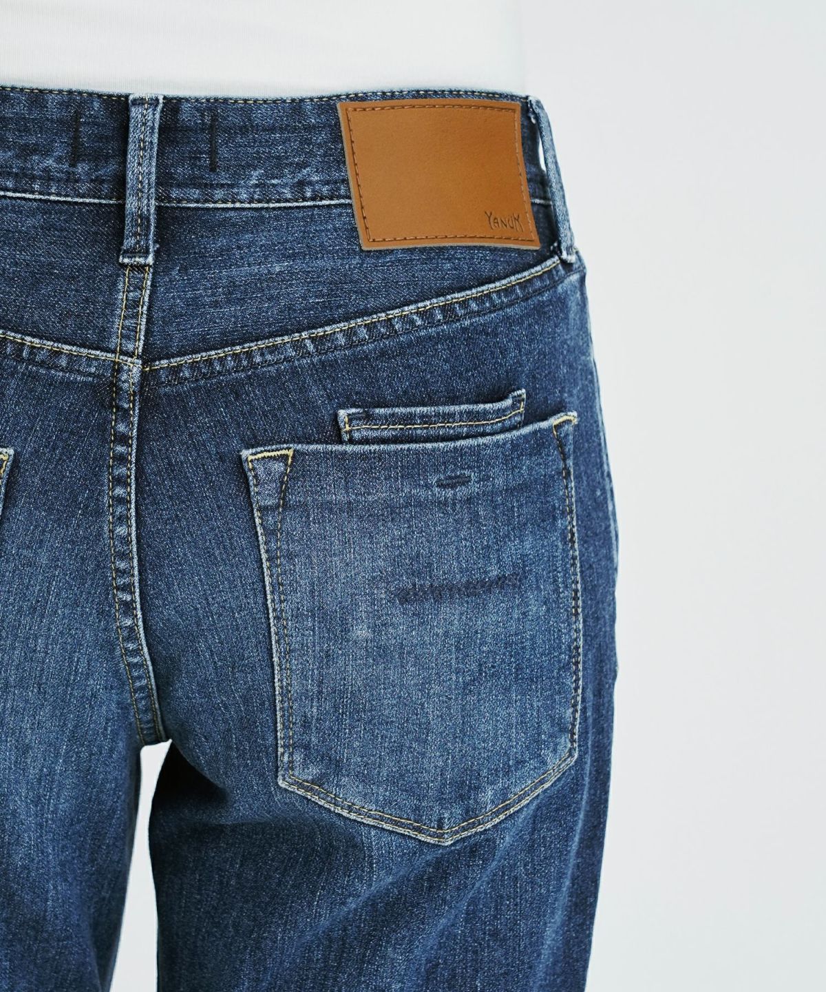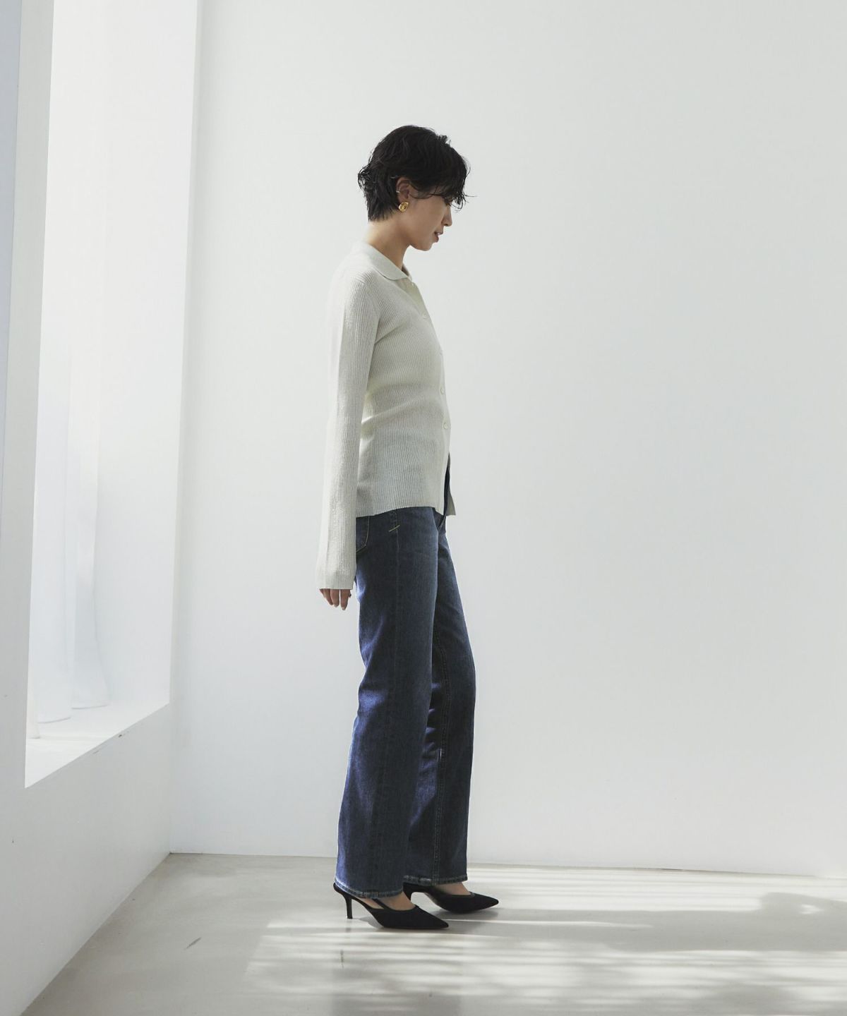 すっきりとした印象を与えつつ、程よい抜け感を演出します。美脚効果とリラクシー感を兼ね備え、メンズのオーセンティックなデニムのような洗練さを感じさせます。