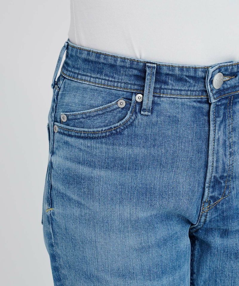 YANUKならではのきれいめ中淡色です。ヒゲのグラデーションに奥行きがあり、「打ち寄せる波(=サーフ)」のようなヒゲが特徴の1本です。メリハリのついたスリが、脚をきれいに見せてくれるポイントで、位置も上の方から入っているのですっきりしたハイライト効果があります。色もきれいなブルー色で、爽やかさを感じさせながらも年間通してお使いいただけるアイテムです。