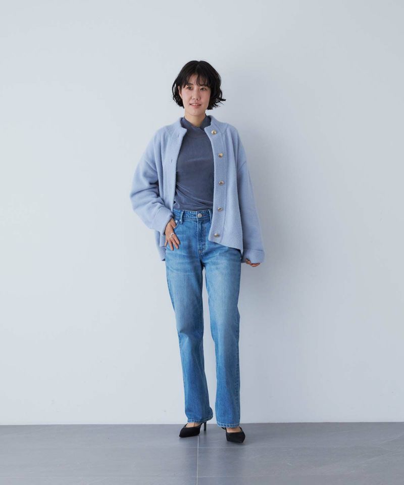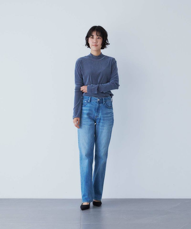 脚の付け根からすらっと伸びるシルエットが特徴のストレートデニムLOUISE。太すぎず細すぎない絶妙なゆとり感が、脚のラインを拾いすぎず美脚見えする1本です。また、脚の付け根からすらっと伸びるストレートシルエットと長めに設定された丈感が、脚長見えまで叶えてくれる優秀シルエットです。ローライズLOUISEは通常のLOUISEより股上がベルト巾1個分浅くなっており、ウエストより少し低い位置にフィットします。また腿まわりを少しすっきりとさせたシルエットです。
