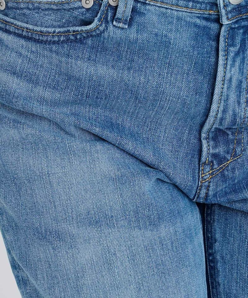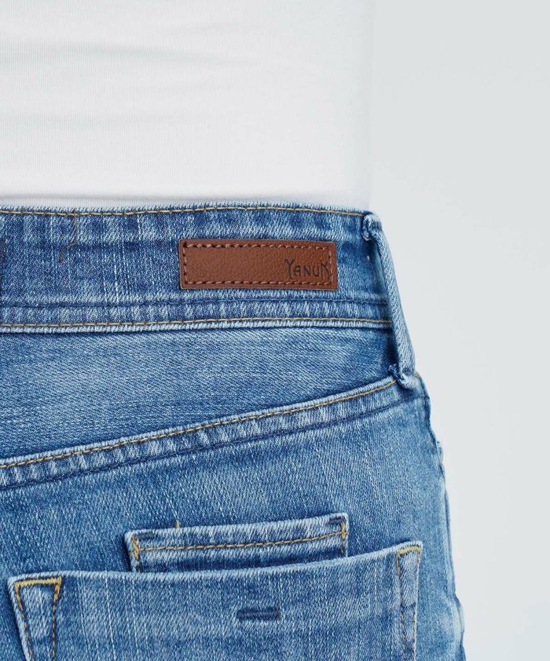 YANUKならではのきれいめ中淡色です。ヒゲのグラデーションに奥行きがあり、「打ち寄せる波(=サーフ)」のようなヒゲが特徴の1本です。メリハリのついたスリが、脚をきれいに見せてくれるポイントで、位置も上の方から入っているのですっきりしたハイライト効果があります。色もきれいなブルー色で、爽やかさを感じさせながらも年間通してお使いいただけるアイテムです。