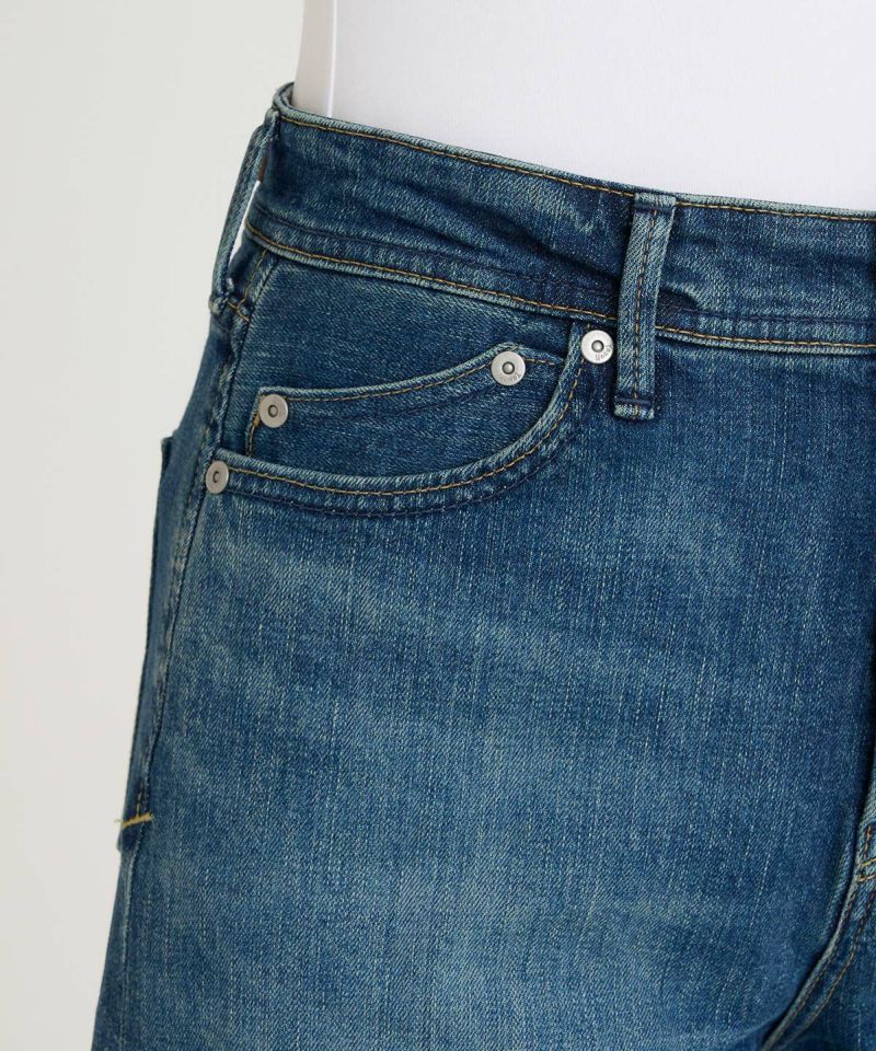 ミッドライズ股上がトレンド感のあるボーイズライクなルーズデニムで大人のカジュアルな着こなしをアップデート。脚のラインを拾わないズドンとした程よいワイドシルエットに対して、腰回りはすっきりとコンパクトな作りでカジュアルダウンしすぎないのがポイントです。腰から裾までまっすぐ落ちるIラインのようなシルエットこだわり、いろいろなトップスと相性よくシーンレスに着用していただけます。