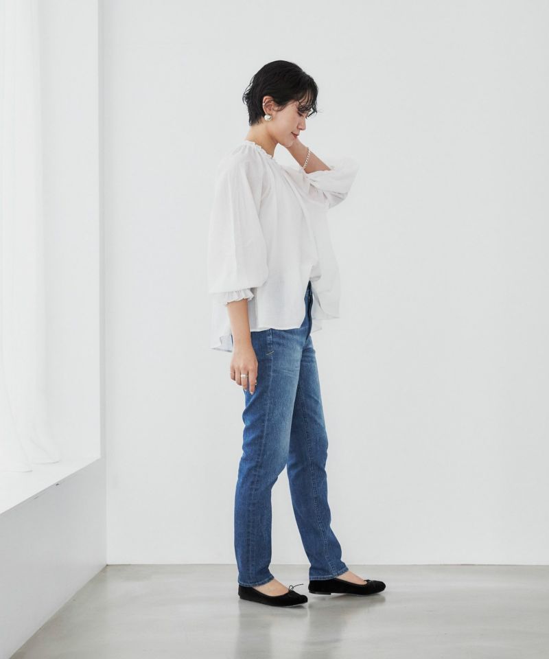 通年穿きやすい王道的ブルーカラー。ヴィンテージをサンプリングし、本格的な表情に仕上げつつも、YANUKらしい美脚見え、スタイルUPにこだわった1本です。
