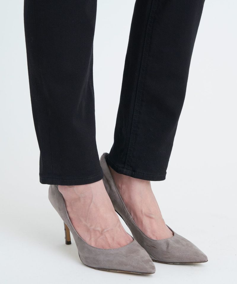 スリムなレッグラインに、ヒップや太ももにはややゆとりをもたせることで、穿きやすさと美脚の両方を兼ね備えたスリムテーパードシルエットRUTH(ルース)。スキニーに比べゆとりがあるため、脚のラインが出すぎない、程よい細身シルエットです。また、オリジナルの縫製方法により、ウエストベルトの後ろ側に伸縮性を持たせている為、腰が浮かず下着が見える心配がありません。