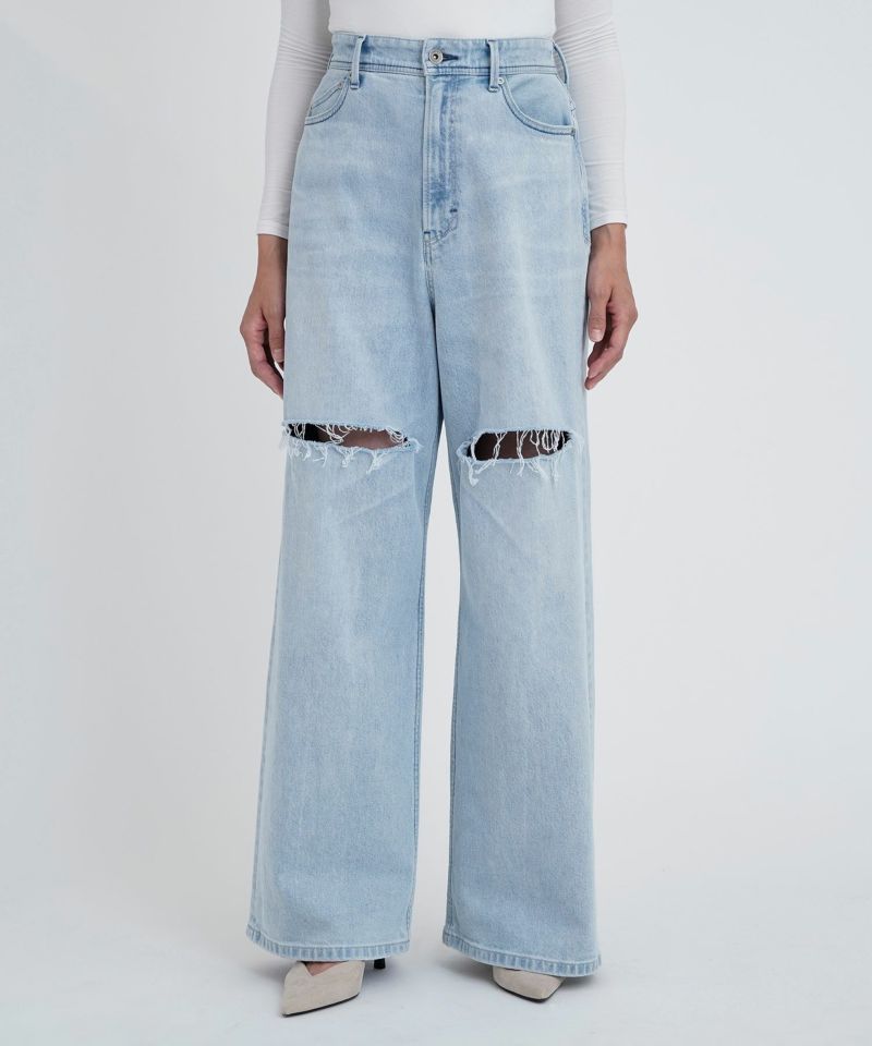 ファッション誌やウェブ等で捻りの効いたスタイリングの数々で読者を魅了しているスタイリスト樋口かほりさんが、いま穿きたいジーンズとして手掛けた大人のためのクラッシュワイドデニムです。