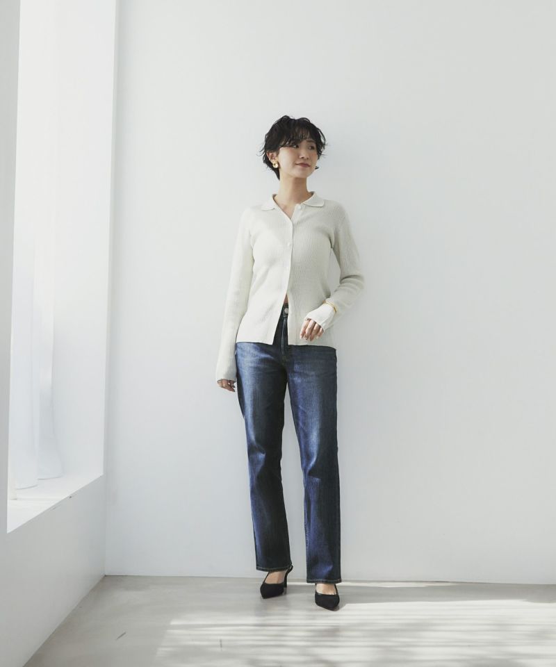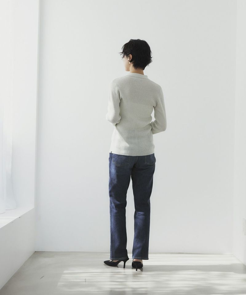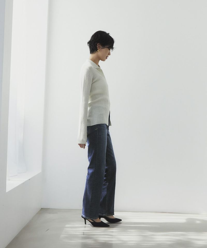 脚の付け根からすらっと伸びるシルエットが特徴のストレートデニムLOUISE。太すぎず細すぎない絶妙なゆとり感が、脚のラインを拾いすぎず美脚見えする1本です。また、脚の付け根からすらっと伸びるストレートシルエットと長めに設定された丈感が、脚長見えまで叶えてくれる優秀シルエットです。ローライズLOUISEは通常のLOUISEより股上がベルト巾1個分浅くなっており、ウエストより少し低い位置にフィットします。また腿まわりを少しすっきりとさせたシルエットです。