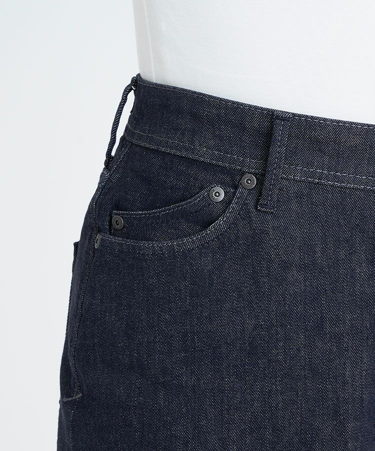 リジットデニムのような深いインディゴ色。リジット風の濃色は、カジュアル過ぎずクリーンな雰囲気が魅力的。定番として合わせやすく、キレイめなコーディネートにもマッチする品のある色です。