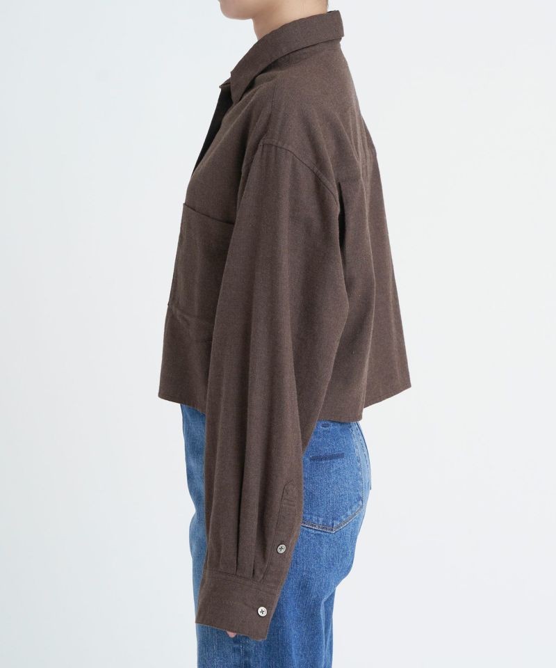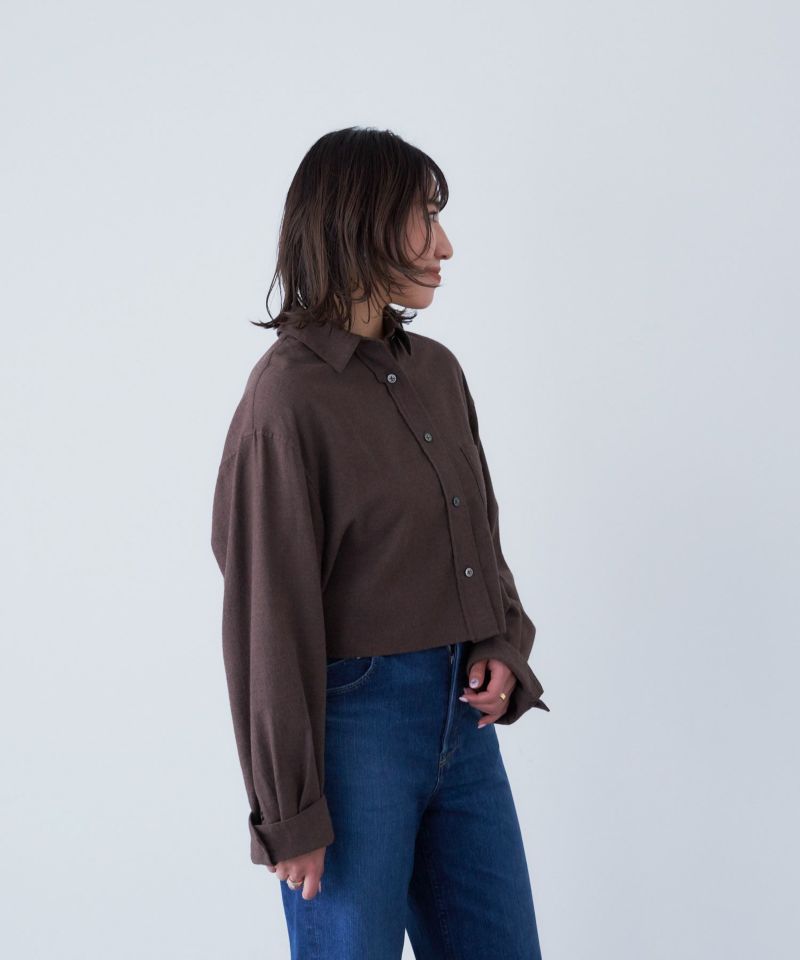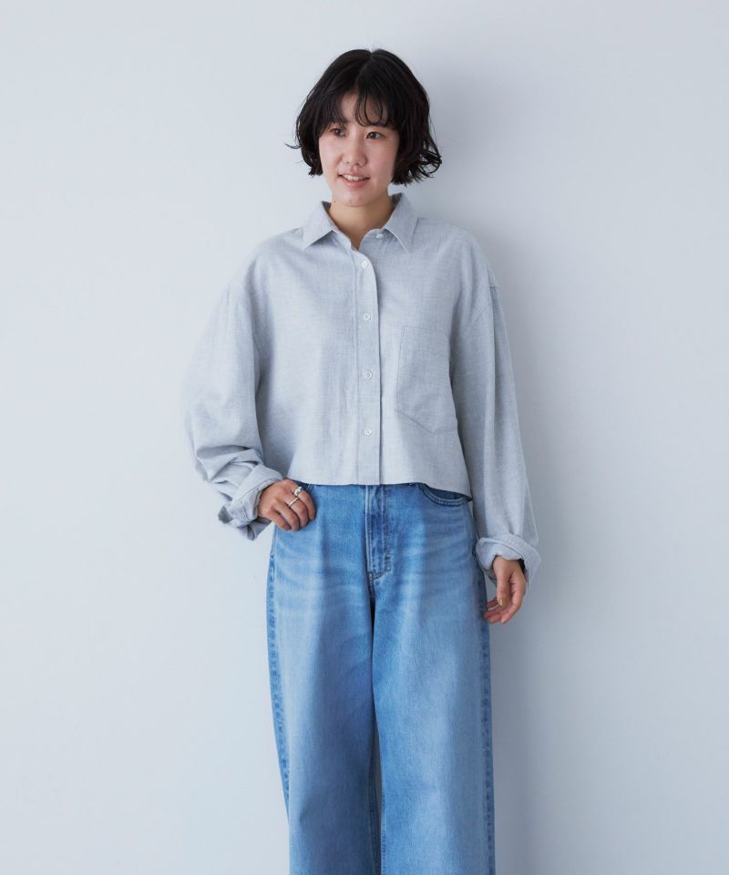 ふんわり柔らかな肌ざわりが特徴のクロップドシャツ。ゆったりとしたオーバーサイズがリラックスした印象を演出。短めの着丈でボトムとのバランスが取りやすく、1枚でこなれ感が出せるアイテムです。また羽織りとしても使えるので、着こなしの幅も広がります。