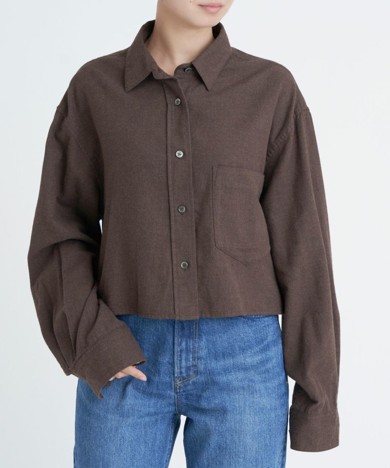 ふんわり柔らかな肌ざわりが特徴のクロップドシャツ。ゆったりとしたオーバーサイズがリラックスした印象を演出。短めの着丈でボトムとのバランスが取りやすく、1枚でこなれ感が出せるアイテムです。また羽織りとしても使えるので、着こなしの幅も広がります。