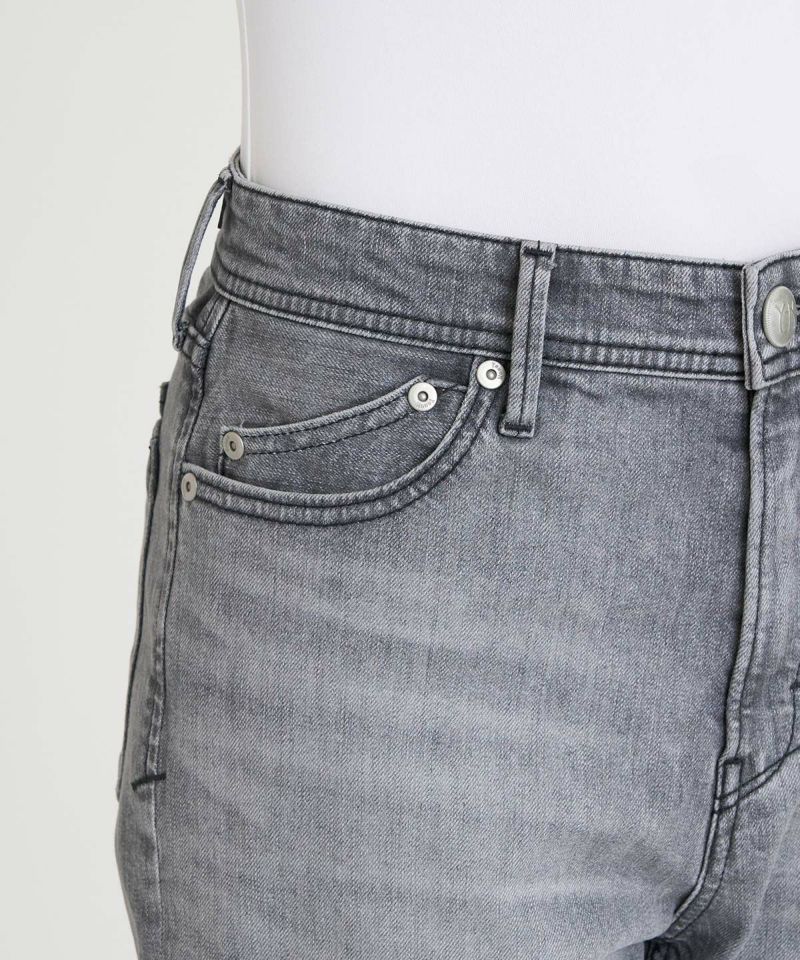 古着風にマイルドな色落ちを表現したライトグレー。一見では薄く見えますが、ベース色を少し濃い目に残しているので、コントラストが効き、膨張しづらいグレーに仕上げています。通年使いやすく、様々なコーディネートに馴染みやすい1本です。