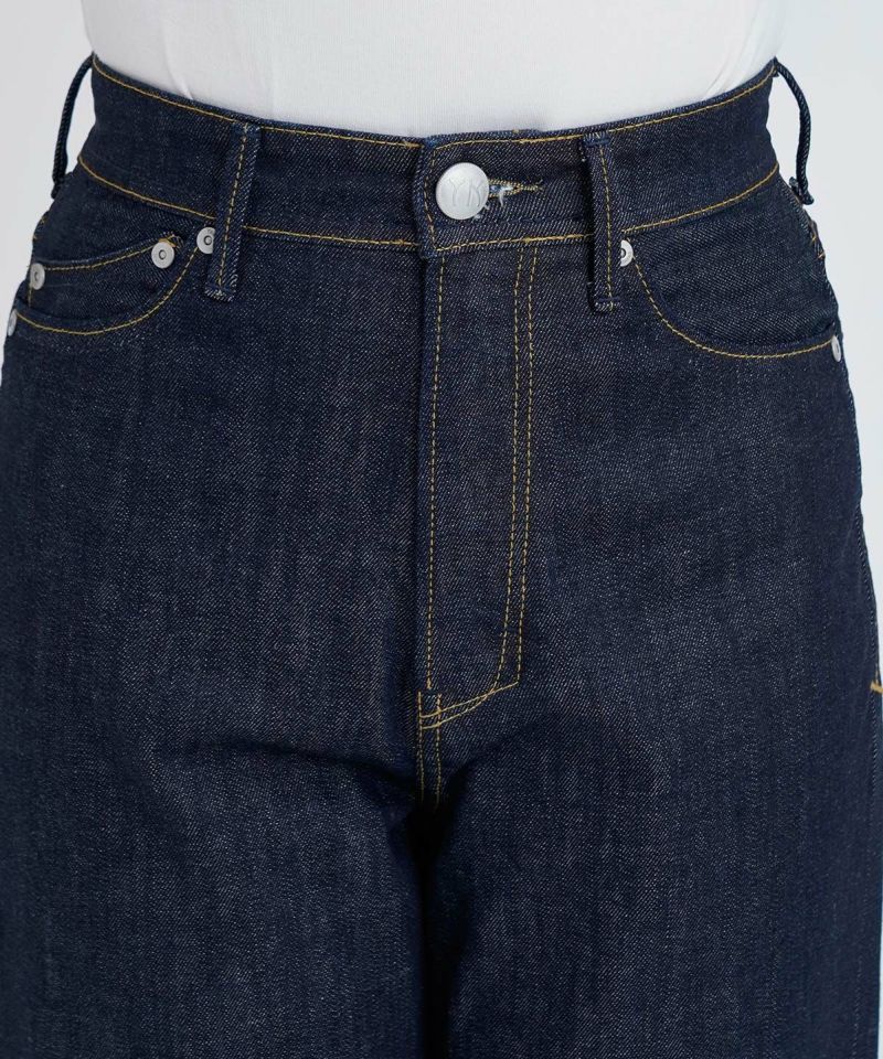 YANUK定番のストレッチデニムで、肉感を拾いにくい適度なハリ感がありながらも柔らかい穿き心地で、美しいレッグラインを実現しています。硬いイメージがあるワンウォッシュカラーでも快適に穿いていただけます。きれいにまとまるワンウォッシュの色味としっかりと深さのある股上で、カジュアルなトップスはもちろんテーラードジャケットなどのキレイめアイテムとも相性がよく、季節や気分によって合わせるアイテムを変えられる着回し力抜群な1枚です。ウエストベルトの裏地を色移りしにくいデニム生地を使用しているので、トップスインでも穿いていただけます。