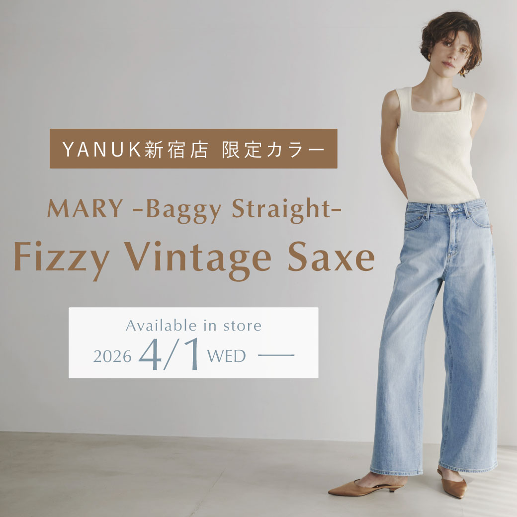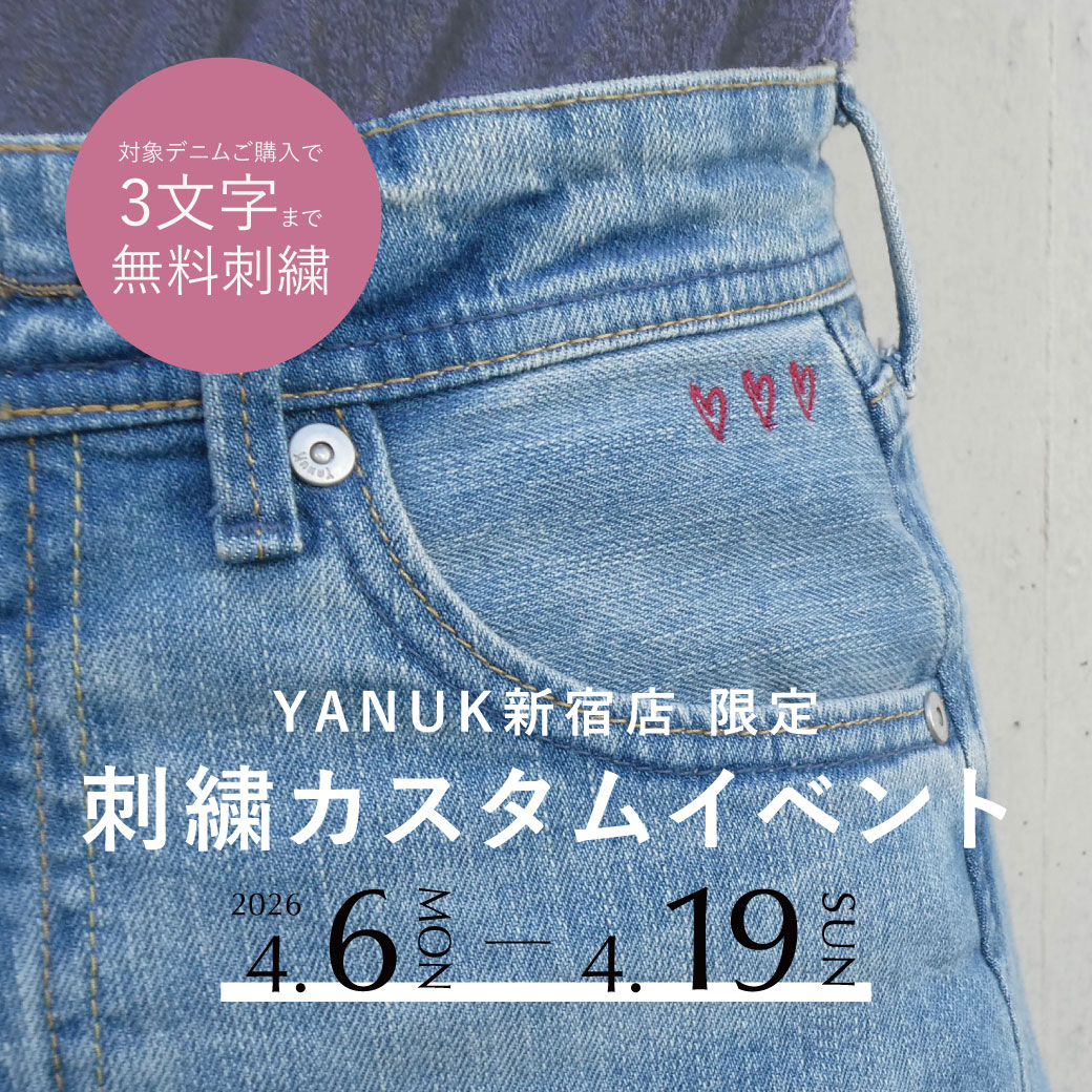 NEWS APR 1,2026 YANUK京都店 移転のお知らせ MAR 27,2026 【ルミネ新宿店 限定】 刺繍カスタムイベント開催! MAR 24,2026 【ルミネ新宿店 限定カラー 】バギーストレートデニム “MARY(メアリー)” 発売! MAR 19,2026 スタイリスト樋口かほりさんとのコラボレーションアイテムが3月26日(木)発売決定! MAR 5,2026 Novelty Fair JAN 19,2026 YANUKアウトレット マリンピア神戸店が 2月18日に 新規オープン! DEC 17,2025 NAILS INC LONDON POP UP STORE 開催のお知らせ NOV 21,2025 【YANUK仙台店 限定】Novelty Fair NOV 13,2025 NEWoMan横浜 × Harry Potterコラボレーション バッグ発売! OCT 30,2025 スタイリスト加藤かすみさんとのコラボレーションアイテムが11月13日(木)発売決定! OCT 25,2025 【YANUK湘南店】 Novelty Fair OCT 21,2025 【YANUK金沢店】 Novelty Fair OCT 20,2025 YANUKメンバーズアプリが登場! OCT 18,2025 【YANUK自由が丘店】 Novelty Fair OCT 18,2025 【YANUKニュウマン高輪店】 Novelty Fair OCT 16,2025 【YANUK池袋店】Novelty Fair OCT 8,2025 スリムストレート“ANNETTE”が10/11(土)より発売開始 OCT 7,2025 「VERY」11月号 SEP 30,2025 YANUK自由が丘店 YANUK×LIVRER POP UP STORE SEP 26,2025 「CLASSY.」11月号 SEP 18,2025 YANUK淀屋橋店 が10/1(水)グランドオープン! SEP 10,2025 YANUK最上級ライン“PREMIUM²”より、ブラックデニムが新登場! SEP 5,2025 YANUKニュウマン高輪店が 9/12(金)グランドオープン! SEP 4,2025 スタイリスト樋口かほりさんとのコラボレーションアイテムが再販決定! SEP 3,2025 ミッドライズの新作ストレートデニム 2型登場 AUG 26,2025 YANUK工場見学ツアーを開催いたします! JUN 2,2025 【2025年秋冬】新作商品の先行予約が本日スタート! MAY 29,2025 YANUK×モデル野沢和香 コラボレーションデニム “SUNDIE” MAY 16,2025 YANUK福岡店限定 Novelty Event MAY 14,2025 NAILSINCとのコラボレーションポリッシュが発売決定! NEXT